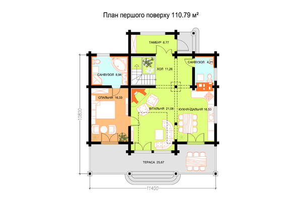 | Габариты дома: 10.80 x 11.40 x ---м |