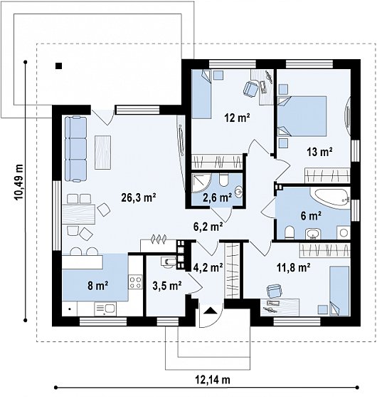 | Габариты дома: 12.14 x 10.49 x ---м |