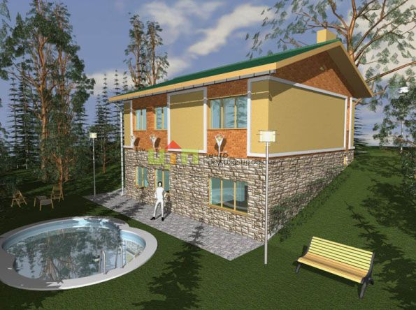 | Дом с мансардой наоборот или парадоксальный дом. Если обычно спальни находятся сверху, то в этом доме они расположены в цокольном этаже. В основные помещения мы попадаем поднявшись на обширную террасу на которой можно разместить стол или поставить детскую коляску. При необходимости терраса легко превращается в летнюю веранду. |